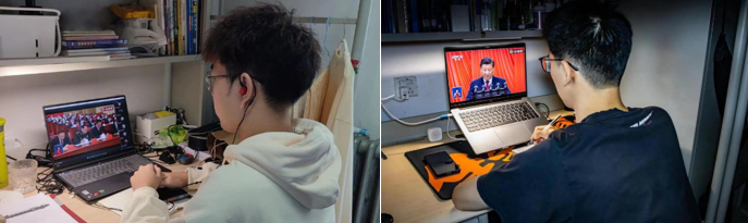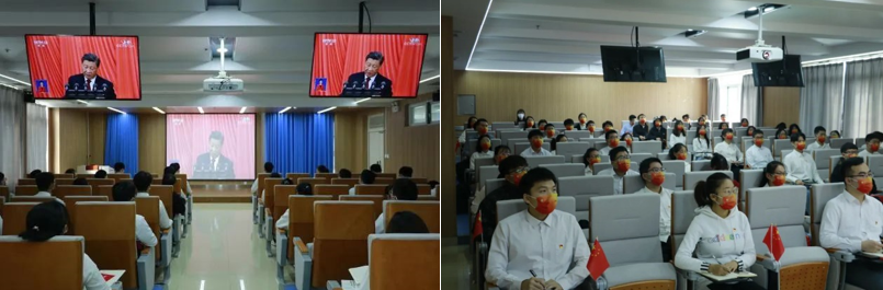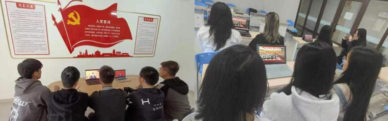 2022年10月16日上午10时,中国共产党第二十次全国代表大会在北京人民大会堂隆重召开。捷报比分app 组织师生代表在信控楼两个会场集中观看实况直播。广大青年学生在宿舍通过电脑、手机等收看开幕会直播。