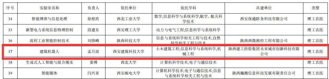 孟月波教授牵头申报的“建筑机器人陕西省高等学校重点实验室”正式获批,准予立项建设。