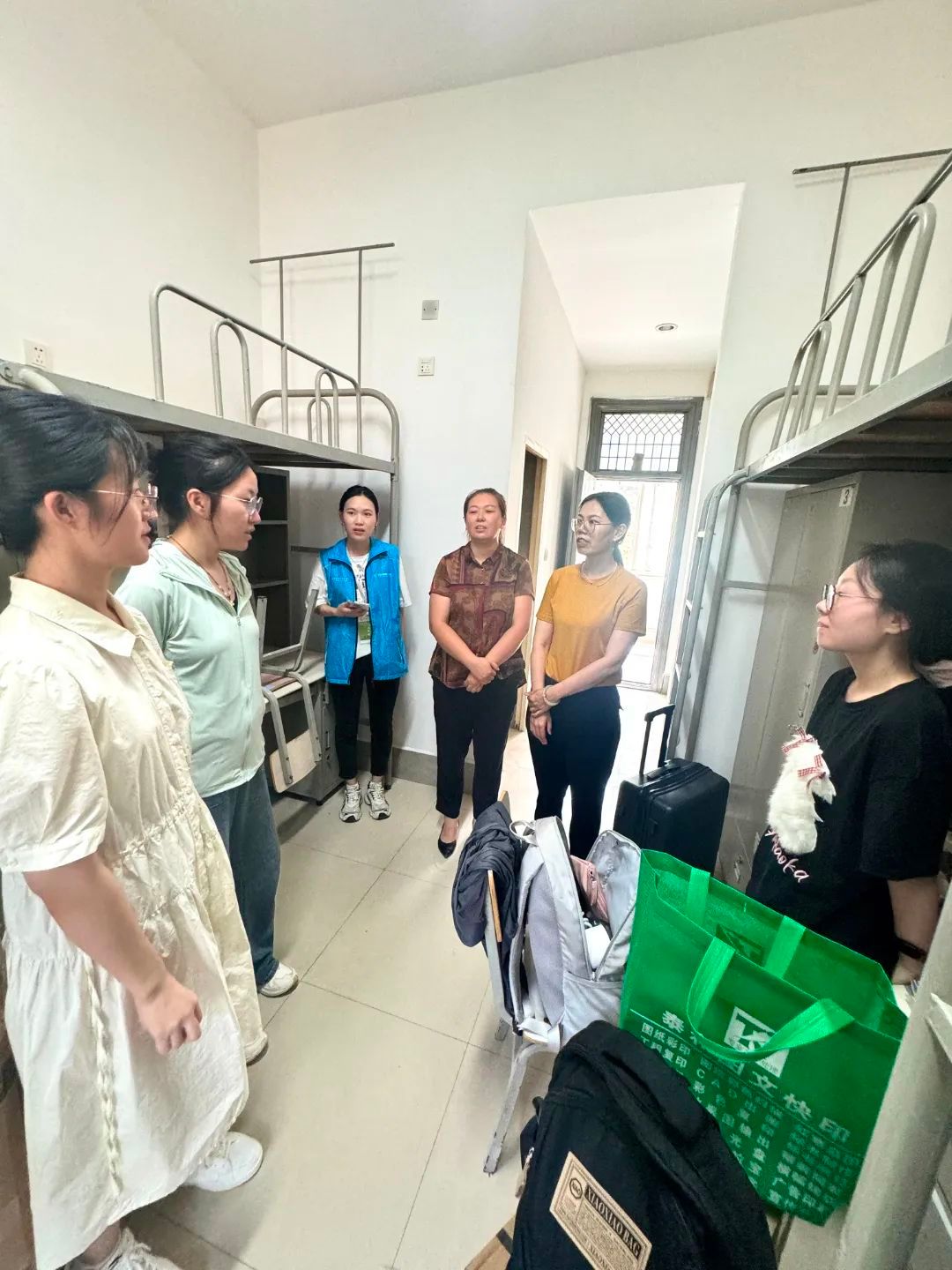 对新生住宿的关怀,了解同学们到校情况,落实新生入住事宜。