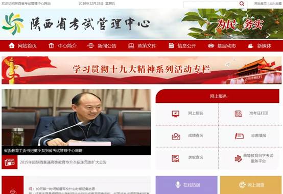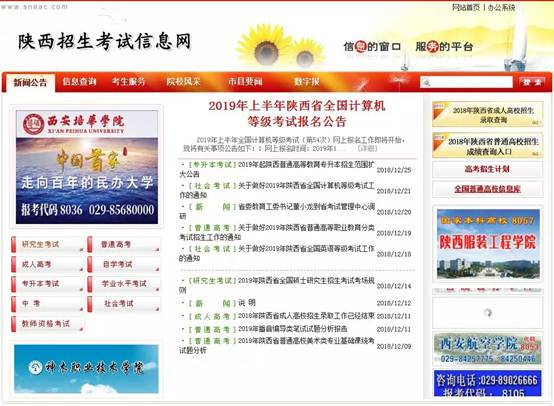 点击“网上报名”栏目,进入“2019年上半年陕西省全国计算机等级考试”的“报名入口”;