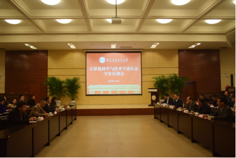 和学科教学和管理人员进行完一对一访谈后,现场考查反馈会在工科大楼3楼报告厅举行。认证专家组简要回顾了现场考查内容,结合自评报告审核反馈意见和认证以来的改进情况,对计算机科学与技术专业所做工作给予了科学的评价和肯定,并就学生培养跟进、监督反馈机制等方面提出了细致、中肯的反馈意见。