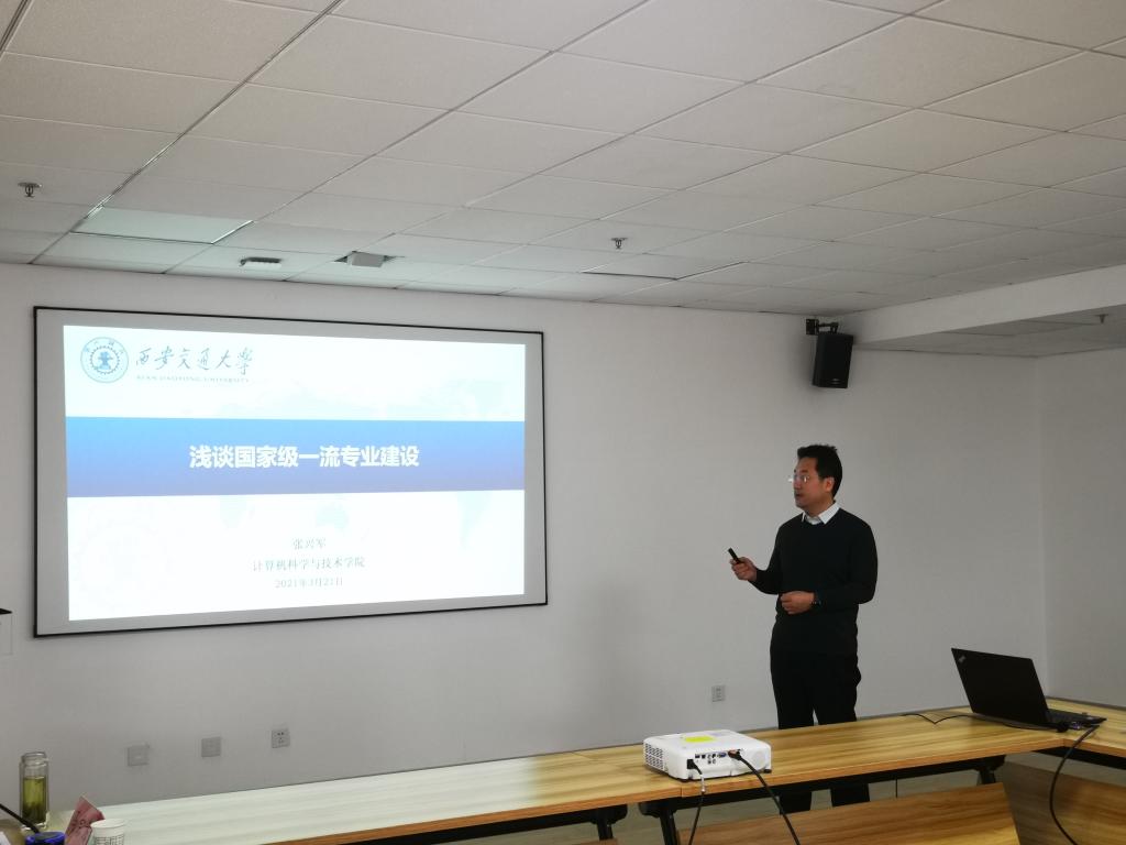 在工科楼713召开计算机科学与技术国家一流本科专业建设推进与研讨会。校党委副书记张志昌、教务处处长肖国庆、校教学督导组赵文静、王民、捷报比分app
