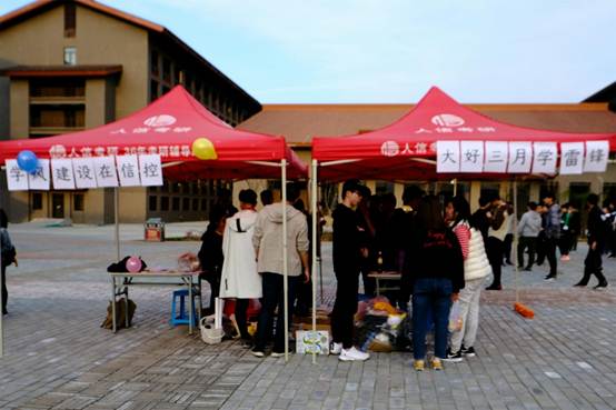 在紫阁食堂门口开展义务捐赠活动。