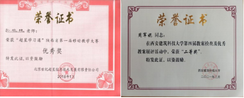 学生部分获奖证书
