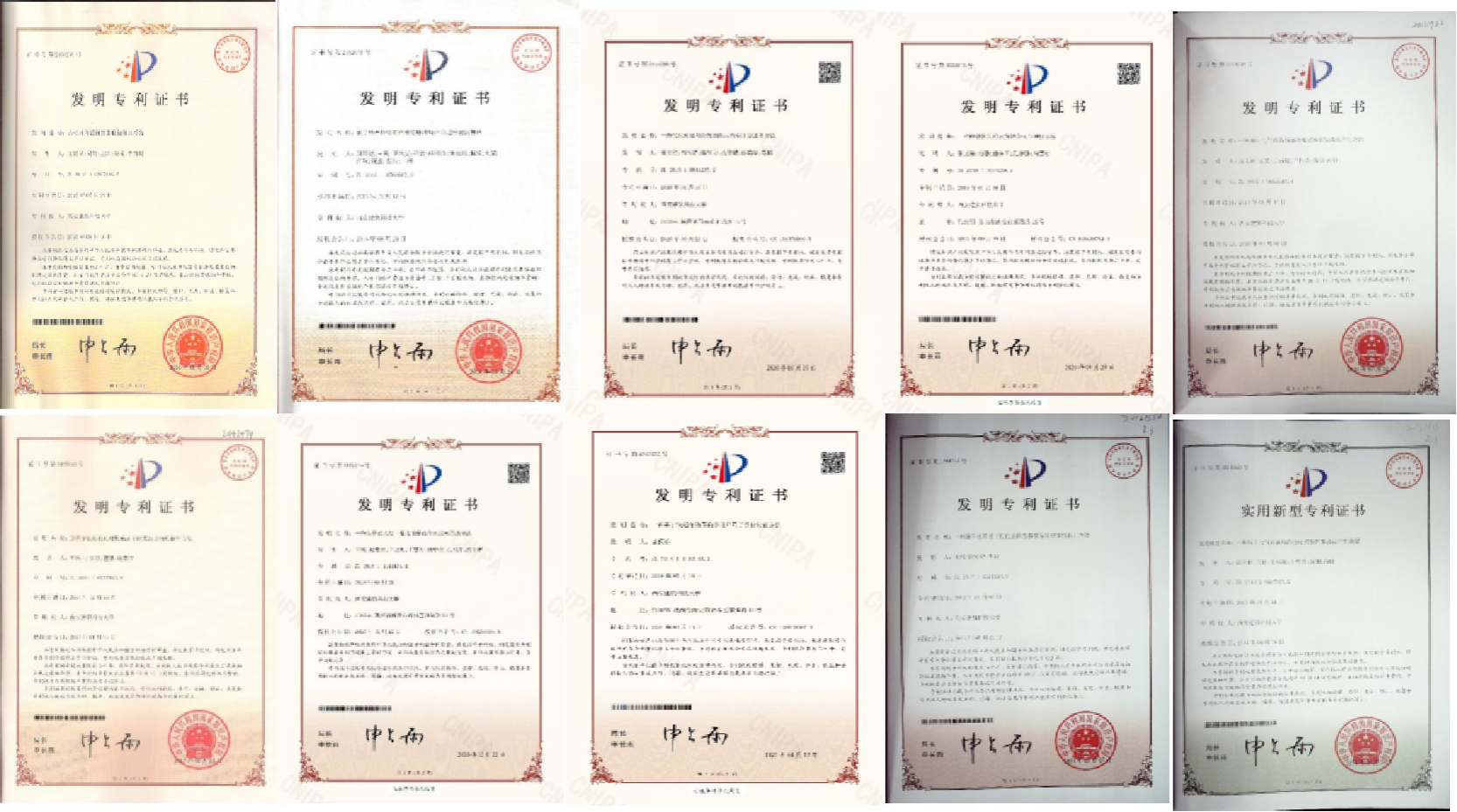 部分专利证书