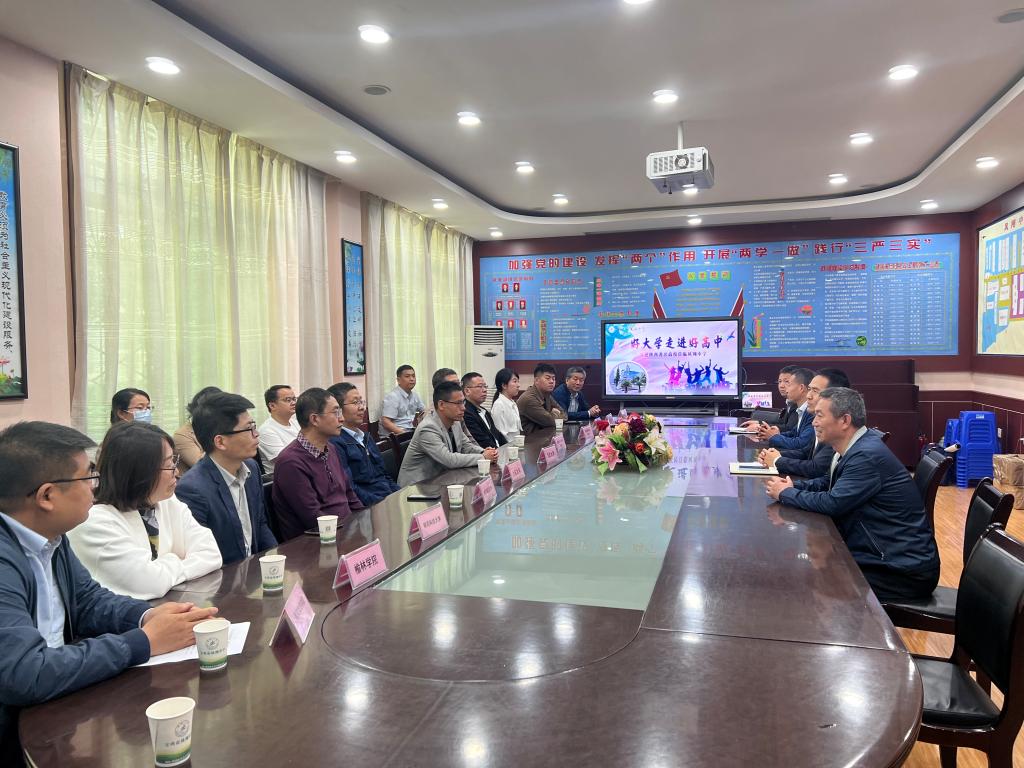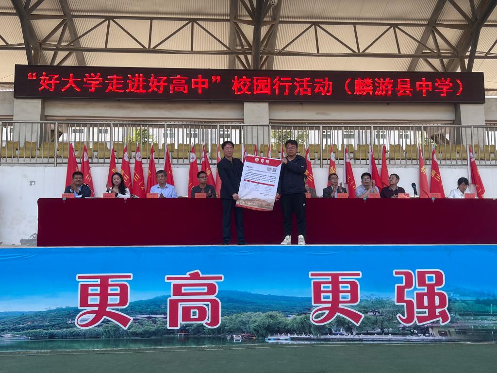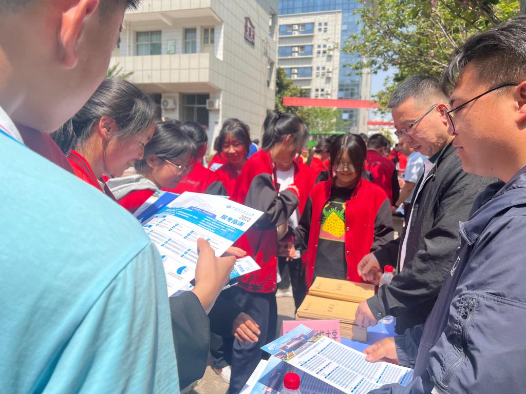 招生宣传组与各生源中学领导老师交流座谈,针对中学的基本办学情况、教育管理、教育质量以及近年来在我校的录取情况情况等进行深入研讨交流。并向生源中学校领导赠送喜报,以感谢生源中学对我校招生工作的大力支持。